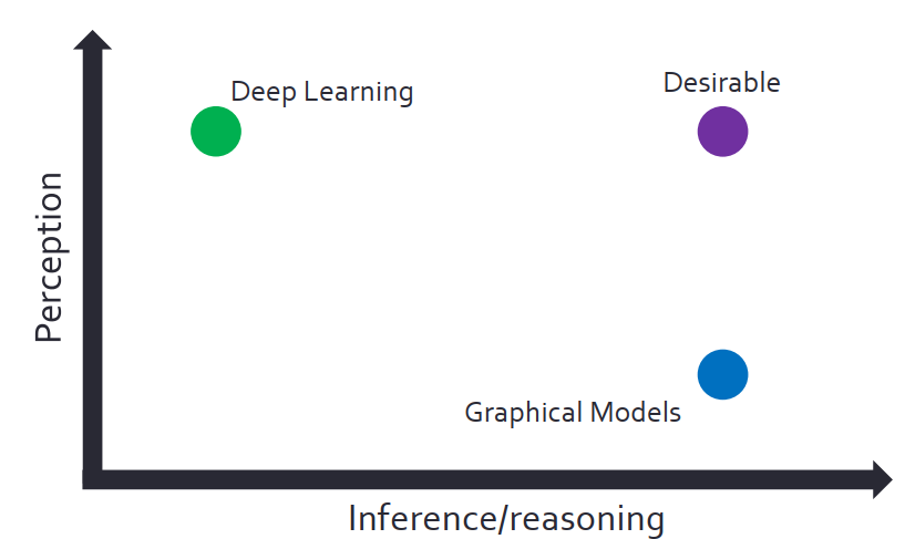 总结一下,深度学习比较擅长感知类的任务,不擅长推理、推断任务,概率图模型擅长推理任务,但不擅长感知任务。